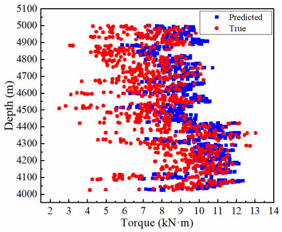 The results of WOB and TOB are shown in Figure 2 and Figure 3, respectively. The RMSE and MAPE of WOB is 23.8 kN and 13.0%, respectively. The RMSE and MAPE of TOB is 2.8 kN·m and 12.8%, respectively.