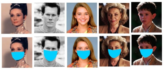 Exemplar images from IMDB-WIKI dataset after face mask overlay.