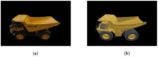 The only requirement for the vehicle pose detection is to have an accurate CAD model even without textures of the item, whose pose must be estimated. For the tests described in this paper, we used the CAD model of a Komatsu HD785 truck. We used the CAD model inside Unity 3D, a cross-platform game engine. In this case, we used Unity to create a simulation environment. We implemented a 360° camera simulator in this environment to capture equirectangular images of the CAD model.