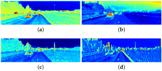 In Figure 15, the ResNet-18 model outputs for deeper layers are obtained. These images are almost similar to the predictions obtained at the output layer. Figure 15a shows the predicted output map, which stresses on the background of the image and Figure 15b shows the predicted output map, which stresses on the road part of the image.