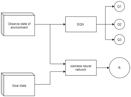 The proposed solution architecture is shown in Figure 8, it consists of a pre-trained SCNN that estimates the reward r obtained by our mobile agent. The reward estimates combined with the Q-Value estimates produced by the DQN can be used to guide our mobile agent towards its goal state.