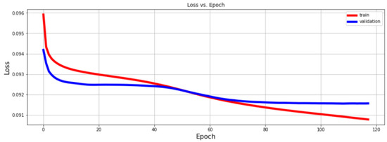 In this section, we present the results from training of our proposed solution. Figure 9 shows the training (red) and validation (blue) error over epoch.