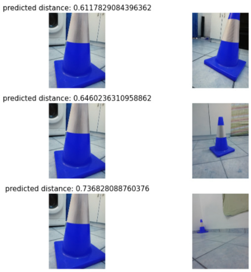 We have demonstrated how a Siamese convolutional neural network (SCNN) can be used to estimate the distance between a mobile agent and its goal. The agent is equipped with an onboard camera to capture frames. The results demonstrate that using a relatively small sample of goal–background pairs we can learn a similarity function, this function can then be used to estimate the similarity between an agents current state and its goal. Figure 9 and Figure 10 show the learning curves when using pre-trained models to estimate rewards, Figure 11 demonstrates that with the given data samples a network with fewer parameters is able to learn the function well. Figure 12 shows reward estimates when the agent is provided with its goal state and must estimate reward for states at varying distances from the goal; demonstrating that the learned reward function is able to encode a notion of distance. Table 4 displays classification accuracy scores for various threshold values from 0.1 to 1.0. The inclusion of a threshold value allows the agent to control how similar states must be to the goal to receive reward. States far away from the goal receive less reward than states closer to the goal. We use a Raspberry Pi 4 to implement a physical agent and show that using the SCNN architecture the agent is able to navigate towards its goal.