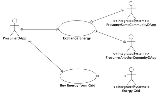 The example includes two use cases and their corresponding smart contracts, Exchange Energy and Buy Energy from Grid. Figure 1 presents the UML Use case diagram that shows both use cases.