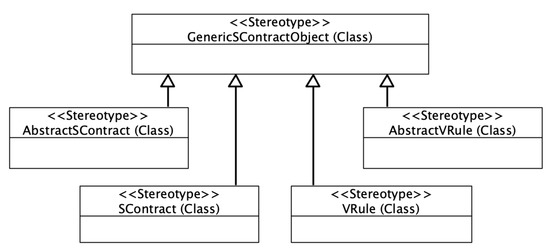 - ≪AbstractSContract≫—used for marking an abstract, generic class of smart contract. The class is a superclass for all types of concrete smart contracts;