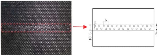 The test samples were commercial geocell products used in subgrade slope protection, as shown in Figure 2. The geocell is made of high-density polyethylene (HDPE), with full-depth and ultrasonic spot-welds used to connect the junctions and aligned perpendicular to the longitudinal axis of the strip. The strip surface has rhomboidal indentations to promote friction with the filling material interface, regular perforation drainage to improve the slope’s drainage capacity, and interlocking with the filling material. Table 1 shows the specifications of the geocell, and Figure 3 presents the details of the geocell junction.