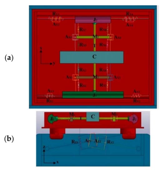 Distribution of springs and dampers in mechanical coupling, (a) Top view (b) frontal view.