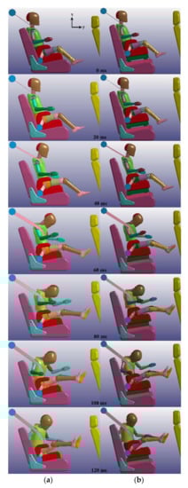Dummy kinematic results: (a) LBB by Cruz et al. [12]; (b) mechanical coupling with LBB.