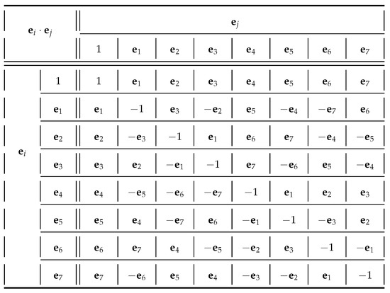 where and are seven octonion imaginary units, each satisfying the property , , and other octonion multiplication rules shown in Figure 1. Number is called the real part of o (denoted as ) and the pure imaginary octonion is called the imaginary part of o (and is denoted as ). Octonions form a non-associative and a non-commutative algebra, which means that in general, for