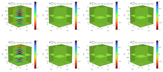The symmetry property mentioned in the previous section plays a vital role in these considerations. The research conducted both on the subject of Wigner distributions and analytic signals [26] raised hopes that similar properties would also be possible in the case of hypercomplex setup. Furthermore, while it is, of course, possible to define the Wigner–Ville octonion distribution of a real-valued signal as the Wigner distribution of the related octonion analytic signal, unfortunately, the lack of relation (5) means that these considerations do not lead to too optimistic conclusions. This remains within the scope of future work when (perhaps) other properties of the OFT and OWD become known.