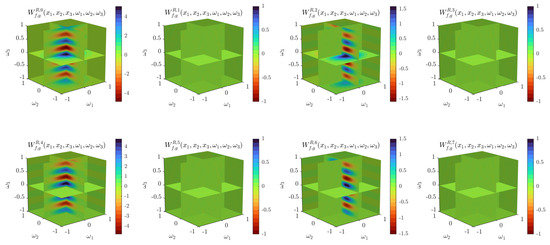 In the literature, one can already find articles describing the use of octonions for the multispectral signal analysis [31]. The already obtained theoretical results concerning the OWD show the possibility of a wider use of this approach. Moreover, the numerical tools developed in previous research [48] facilitate the theoretical and practical research; however, there are still many limitations to such an approach. Among others, it is the lack of time–frequency symmetry, which may make this variant of the Wigner distribution less popular. Further work will aim to circumvent some of these limitations to define another form of symmetry and extend OWD applications’ scope.