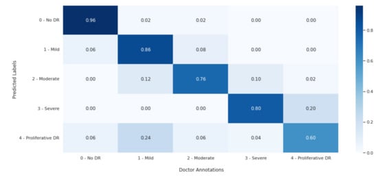 - Masood, S.; Luthra, T.; Sundriyal, H.; Ahmed, M. Identification of diabetic retinopathy in eye images using transfer learning. In Proceedings of the 2017 International Conference on Computing, Communication and Automation (ICCCA), Greater Noida, India, 5–6 May 2017; pp. 1183–1187. [Google Scholar]