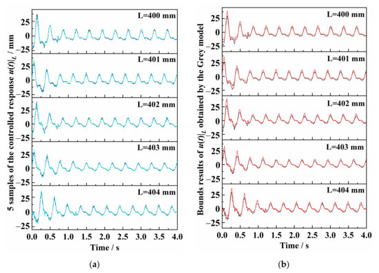 As discussed earlier, the Grey constant coefficient can be finally confirmed by the insufficient sample data to provide necessary input condition for solving , as is shown in Equation (13). Moreover, considering that in some typical cases, the errors in measurement or from an inherent system may be inevitable during the sample extraction process; therefore, the way to eliminate the gross error needs to be explored as well (referred by [36]). To sum up the foregoing comprehensive analysis, the uncertainty bounds for interval variable are available. Similarly, the processes of the lower and upper bounds subjected to the time-varying uncertain parameter can be rationally represented.