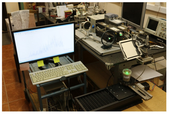 A laser beam is directed to the studied object through two rotating prisms. The scattered radiation from the object is collected by a quartz lens and focused on the entrance slit of the spectrograph. The system of signal registration consists of a compact spectrograph (Spectra Physics, MS127i) equipped with a CCD camera with a strobable brightness amplifier (Andor iStar).