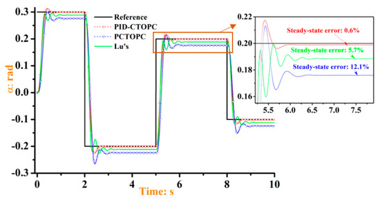 - A closed-loop steady-state tracking error reduction approach is proposed in the field of CTOPC. The accumulative tracking errors, which are integrated into a new error state with PID structure, are considered in the proposed PID-CTOPC approach such that tracking errors within the operation envelop of the closed-loop system can be minimized compared with the PCTOPC and the Lu’s approach, which only consider the current tracking errors.