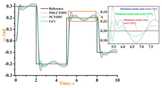 - Robustness of the closed-loop system is significantly enhanced. In the proposed PID-CTOPC approach, current, accumulative, and derivative tracking errors are minimized simultaneously such that reduction of input fluctuation, output overshoot, and steady-state tracking error can also be derived in contrast with the PCTOPC and the Lu’s approach in the presence of unknown disturbances.