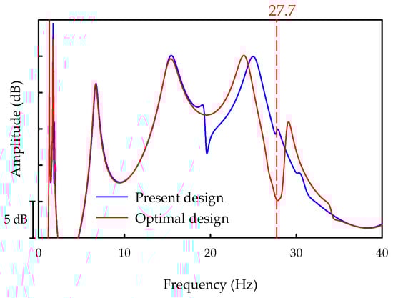 Comparison of the frequency response functions for the dynamic models with the present and optimal designs.