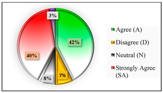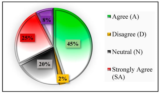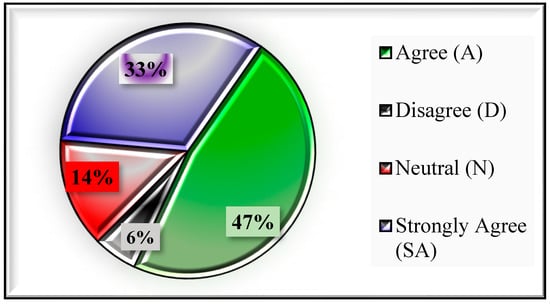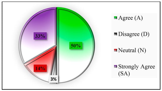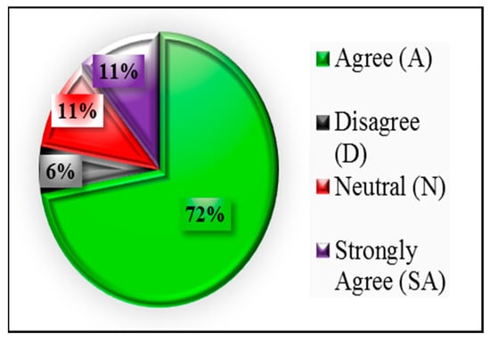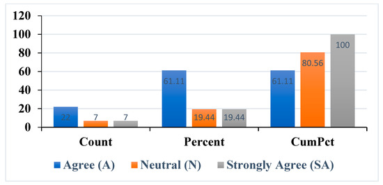 A full set of accurate, agile practices in the technical component of agile processes leads to a wonderful working project, according to Figure 5. The remaining 2.78% disagreed, showing that the agile approach’s technological aspects may assist a project to achieve its goals. Finally, the result addresses the project management gap that causes delays. Using a full set of agile approaches, the project may be segmented and the required quantities, resources, and prices determined. It may then be delivered implant-approved to reduce errors, project delays, and completion time.