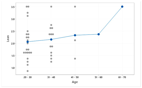 Figure 17 indicates that the responses of participants are almost the same regarding lean methodology. However, the answers have changed in the age group of 61 to 70.
