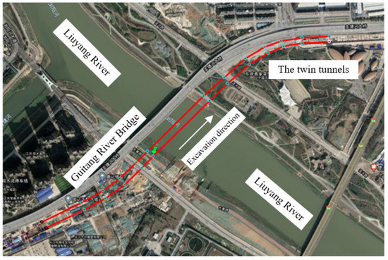 Location of the Liuyang River, the Guitang River Bridge and the tunnels.