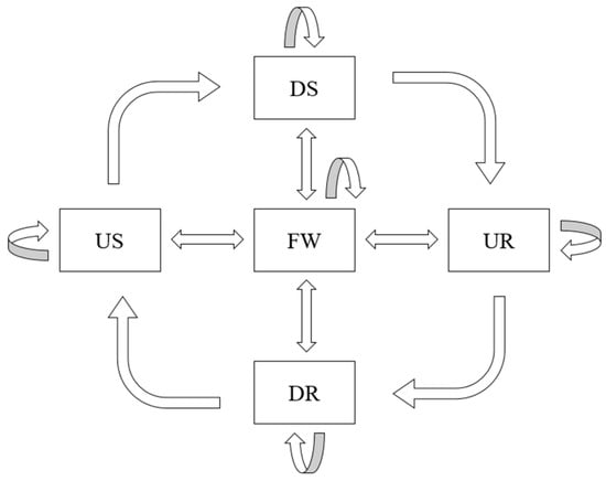 DS modes of locomotion does not exist. When the current mode is FW, the next motion mode may be stability mode FW or four other conversion modes, i.e., US, DS, UR and DR. When the current mode is other four motion modes, the motion mode at the next time is either the same stable mode as the previous time or flat mode. Other locomotion mode transitions, such as US