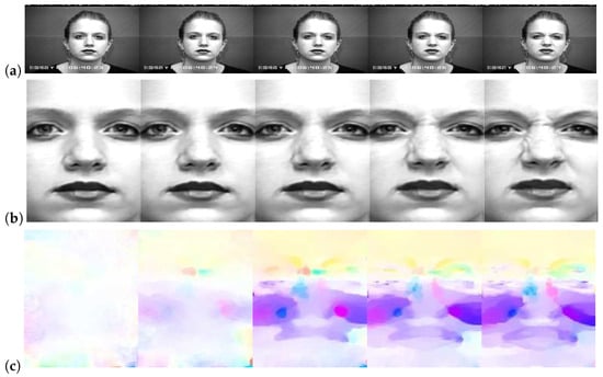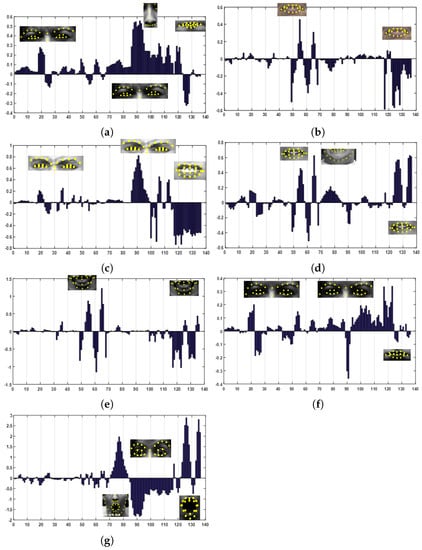 Table 6 shows the performance of facial expression recognition for the CK+ database according to different input data types of the SVM. In this additional experiment, the SVM classifier using the direct landmark displacement in Equation (