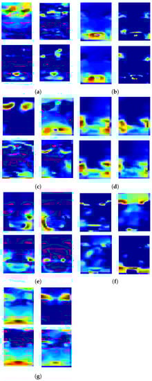 Figure 6 shows the feature map visualization of the second convolution layer of the model, when we applied training data in different expressions. We selected representative feature maps of each facial expression, which shows feature maps that capture distinguishing characteristics of each facial expression. The visualized feature map of each expression shows different activation areas of each expression, which may be corresponding to the action unit of each expression type. The result implies that the network properly extracts the features of different expression types.