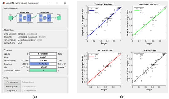 Artificial neural networks (ANNs) are capable of modelling nonlinear and complex systems with a large amount of input and output data []. A neural network’s ability to predict is dependent on its structure (number of layers, number of neurons in the hidden layer, type of activation function) []. The methods based on ANNs have been used to predict the moisture content of many dried agriculture products, i.e., apple [] and shelled corn []. Pandiselvam et al. [] used ANN for modelling microwave processing parameters for tender coconut water. Srikanth et al. [] used ANN for modelling and optimisation of cocoa bean extractor parameters. Kothakota et al. [] modelled and optimised process parameters for nutritional enhancement in enzymatic milled rice by ANN.