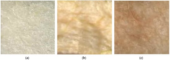 The scanner (CanoScan 5600F, Canon Inc., Tokyo, Japan, 4800 × 9600 dpi) was applied for determining the colour attributes for fresh, dried, and rehydrated apple sample. Obtained colour images (20 images for each apple batch) were loaded into the sRGB colour space. The mean brightness of pixels in each RGB channel of the image was used to express colour parameters. The ImageJ (ver.47i, Madison, WI, USA) software was used. A way of carrying out the colour measurements was described in the paper by Winiczenko et al. [].