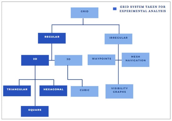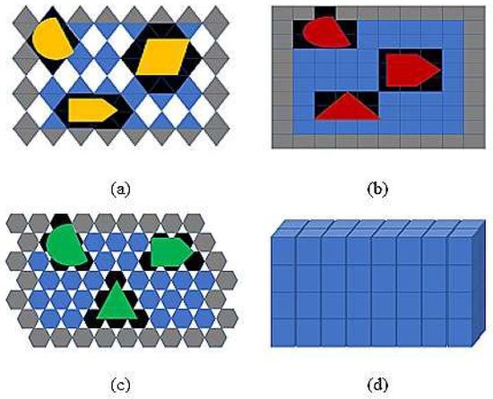 - 3D cubic grid: Apart from the other grid systems which used the 2D environment, the 3D Cubic grid shown in Figure 3d is based on a continuous 3-dimensional environment. Not much study has been done on this grid system for pathfinding, but it can be applied in other fields such as image processing and computer graphics [18].