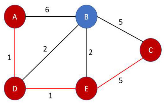 - Dijkstra, E.W. A note on two problems in connexion with graphs. Numer. Math. 1959, 1, 269–271. [Google Scholar] [CrossRef]