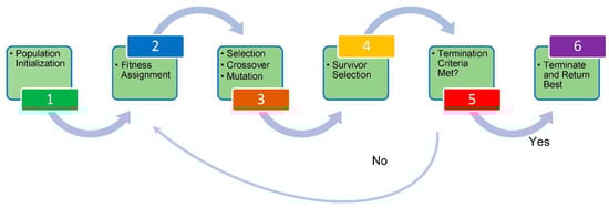 - Mutation: In certain new offspring formed, some of their genes can be subjected to a mutation with a low random probability. This implies that some of the bits in the bit string can be flipped. Mutation occurs to maintain diversity within the population and prevent premature convergence. The Algorithm terminates if the population has converged (does not produce offspring which are significantly different from the previous generation). Then, it is said that the genetic Algorithm has provided a set of solutions to our problem as shown in Figure 13 [79].
