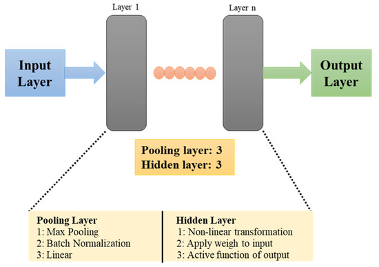 Typically, a CNN is composed of a feature extraction layer and a feature mapping layer. Neurons play a significant role in connecting these layers. The feature extraction layer consists of a local acceptable domain of the previous layer, which is connected through neurons. The local characteristics are extracted and forwarded to the feature mapping layer, which consists of multiple feature maps. Generally, a feature map is a plane filled with neurons, and it is followed by a calculation layer, which is used to calculate the features. The basic structure of a CNN model consists of input, hidden, and output layers. They are fully interconnected in one direction, from the input layer to the output layer, including a hidden layer and a pooling layer.