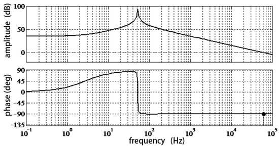 According to Equations (4)–(13), the amplitude frequency characteristic and phase frequency characteristic of the system after series PI correction are as follows: