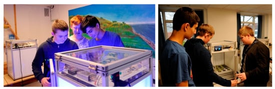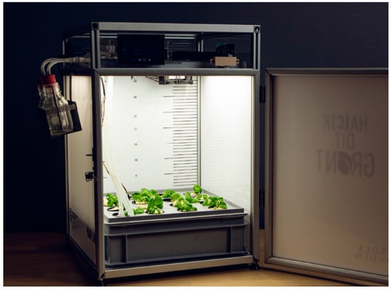 Similar to our approach, Stevens and Shaikh [] created their MicroCEA as an adapted version of the MIT Personal Food Computer, and Boanos et al. [] also made several changes to the MIT Personal Food Computer to create a cost-effective automated food computer to overcome some of the shortcomings of the MIT Personal Food Computer. Even if little data is provided, Boanos et al. [] showed indications of differences in growth conditions between blue and red light conditions on cilantro grown inside such a food computer. There was no work on the educational suitability and adoption in these projects.