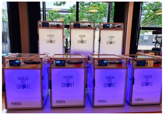 With the GrowBot, we have developed a tabletop-sized smart farm which is directed for educational purposes. The smart farm is defined as “a continuous production system that cultivates crops without the human intervention through the automatic control in a suitable space for the crops growth environments such as light, temperature, humidity, carbon dioxide levels, and nutrients” []. Putting emphasis on the comprehensive systems design, we aim at delivering a smart farm system for the educational sector with simplicity and user-friendliness for teachers and pupils, easy access for programming and monitoring, and readiness for implementation in school practices, with educational resources matching the curriculum and learning objectives.