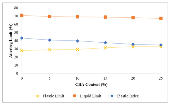 Atterberg limit of the clay–CHA mixture.