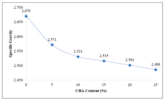 The specific gravity of the clay–CHA mixture.