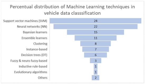 Distribution of ML technique used in vehicle data classification (Data by Elassad et al. []).