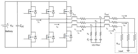 Figure 3. The first-order differential Equations (11)–(22) have been derived and validated with the MATLAB/Simscape model in an abc frame of reference for the three-phase inverter is presented in