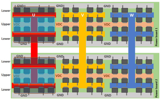 25]. According to the Simrod three-phase inverter topology, 16 upper and lower MOSFETs are connected in a parallel configuration, as demonstrated in
