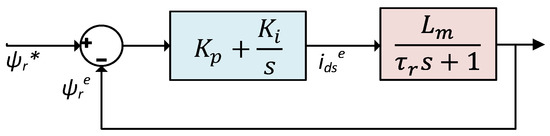ωcp). The PI controller’s proportional gain and integral gain are set to achieve desirable controller performance (i.e., rise time, settling time, overshoot). The speed, flux, and current feedback controllers are depicted in