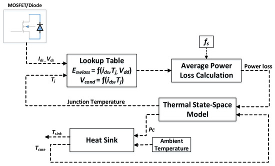 16]. The power losses, as well as thermal optimization, have been in general controlled by modifying electrical parameters. The power losses have been estimated by means of electrical loading on the devices and then transformed into a thermal model to generate the junction temperature of the semiconductor devices, as discussed in [