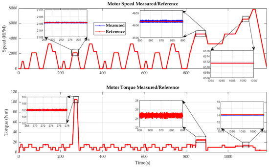 Figure 24. The ambient temperature is considered at 25 °C. The implemented controllers track the speed and torque reference command generated by the speed controller, as depicted in