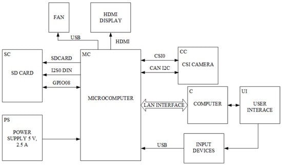 Nvidia Jetson Nano microcomputer was chosen because of its ratio between price and performance. The device can implement the currently available deep learning algorithms. Moreover, the device supports Nvidia JetPack, which included board supports package, Linux OS, CUDA, cuDNN, and TensorRT deep learning libraries, dedicated for object detection. Additionally, the device has many input and output ports, power is supplied through USB, and has various interfaces, such as GPIO, CSI.