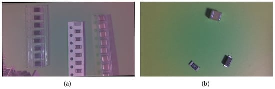 Sample images of a collected dataset with SMD components. (a) SMD components in a package. (b) SMD components without a package.