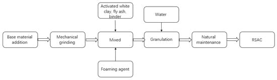 Although Group IV had the best adsorption effect on copper ions, it was found that the residual solution had slight precipitation and the strength of the RSAC particles was reduced to break easily. On balance, Group III with the second highest removal rate was selected as the best ratio for the subsequent experiments. The process flow of the pellet is shown in Figure 2.