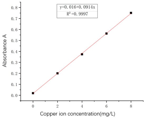 The standard curve was plotted with the copper ion concentration of the standard series as the abscissa and the corresponding absorbance as the ordinate. The corresponding copper ion concentration was determined from the standard curve according to the absorbance of the water sample to be measured.