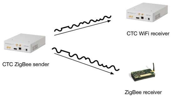 - Kim, S.M.; He, T. FreeBee: Cross-technology communication via free side-channel. In Proceedings of the 21st Annual International Conference on Mobile Computing and Networking, Paris, France, 7–11 September 2015; pp. 317–330. [Google Scholar]