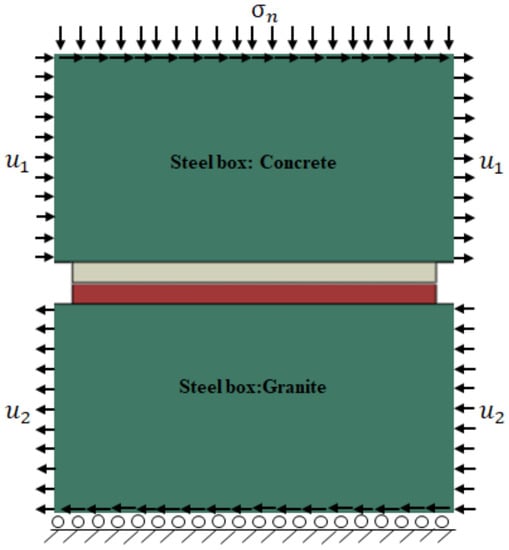 The shear behavior of rock–rock, concrete–rock, and concrete–concrete interfaces is crucial in the design and stability assessment of geotechnical structures such as dams, rock socketed piles, rock bolts, and repaired concrete structures [1,2,3,4,5,6,7,8,9]. In this study, particular attention is given to the shear behavior of bonded concrete–rock interfaces.